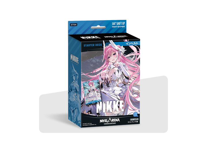 リストに戻る 勝利の女神:NIKKE NivelArenaスターターデッキST04〈インヘルト〉 発売日 2025年11月28日 構成品 スターターデッキカード41枚、プレイシート1枚 · この製品は1人用のデッキセットで、すぐにゲームをプレイできます。· 製品の特性上、同じカードが複数枚入っています。· リーダーカード(L)の代わりにスペシャルリーダーカード(SPL)が入っていることがあります。 페이지 정보 작성자 니벨아레나 댓글 0건 조회 3,865회 작성일 25-06-24 11:33 본문 Detail View リストに戻る
